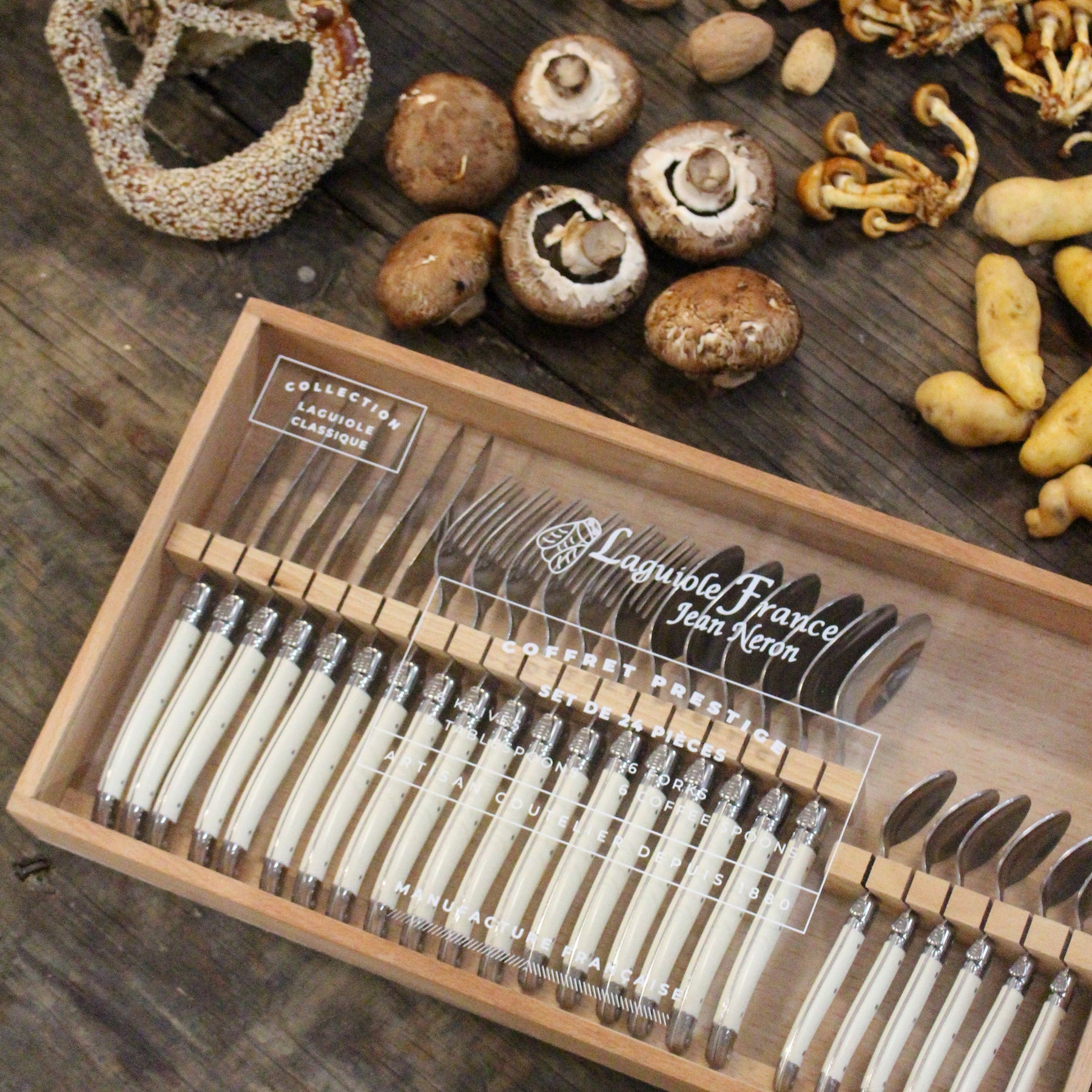 Laguiole 24 Piece Flatware Set, Ivory in Wood Box with Acrylic Lid