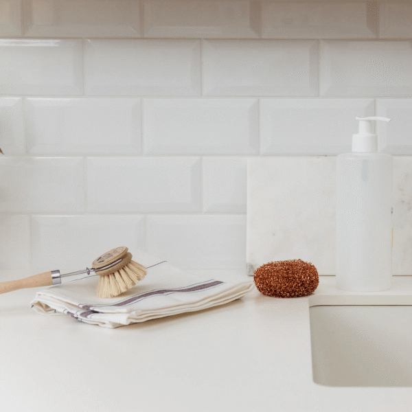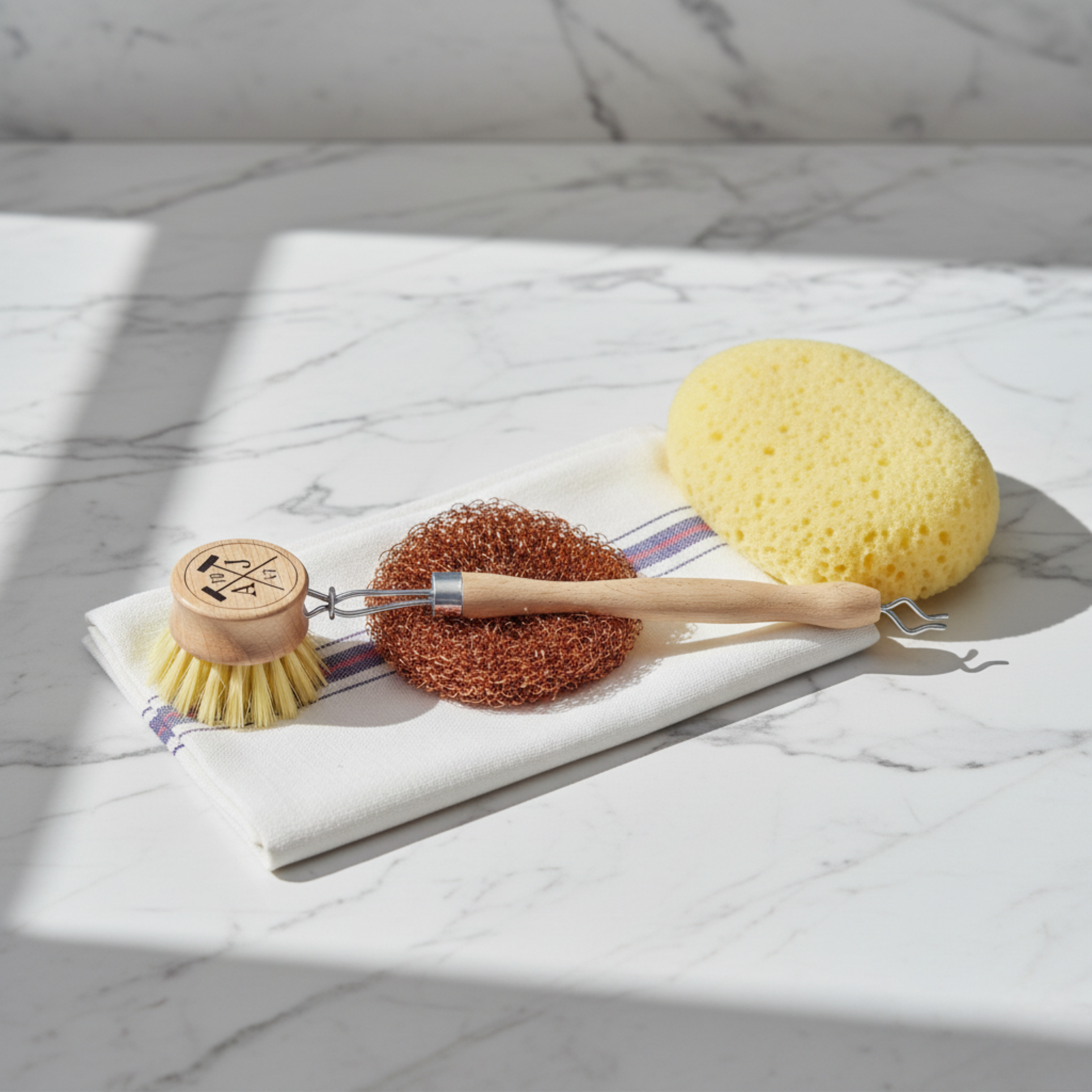 The 4-piece dishwashing set for the kitchen contains everything you need for sustainable cleaning. The reusable items in the set would make a wonderful gift for those who run a sustainable household.