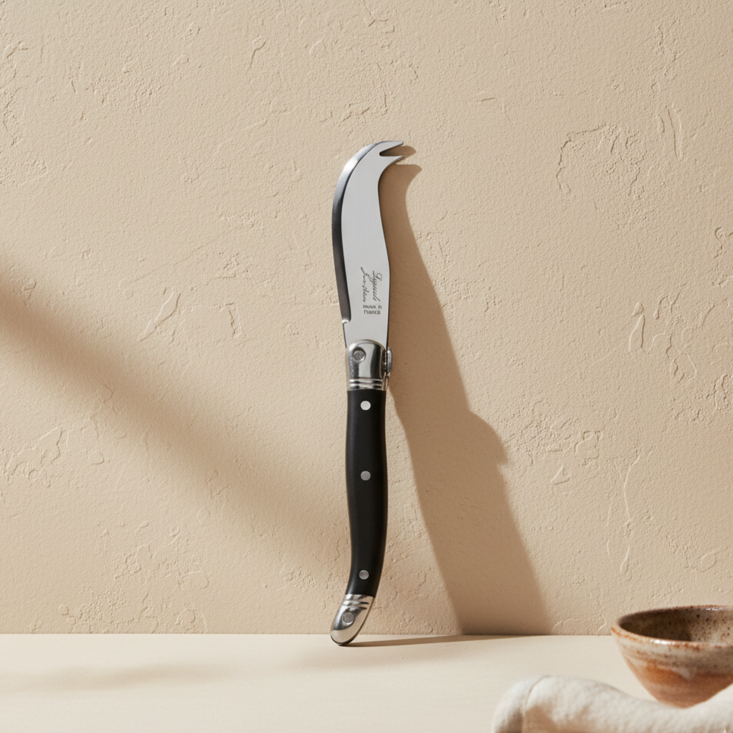 A versatile option for semi-hard cheeses like Swiss and Cheddar; the forked tip is perfect for picking up slices after cutting.