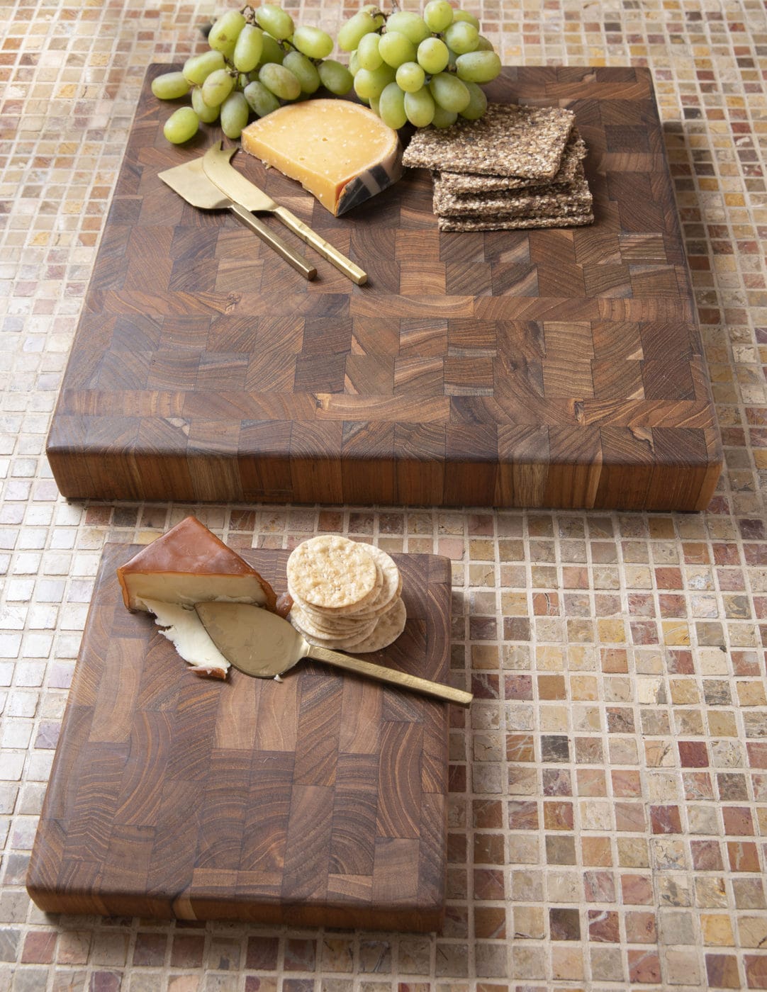 Herb your enthusiasm for chopping with this staggering piece of art featuring the Teak End Grain. Take advantage and cheese the day by using it as a display for your charcuterie, fruits, and nuts.